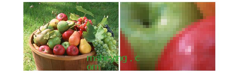 位图,也叫光栅图,是由很多个像小方块一样的颜色网格(即像素)组成的图像。位图中的像素由其位置值与颜色值表示,也就是将不同位置上的像素设置成不同的颜色,即组成了一幅图像。位图图像放大到一定的倍数后,看到的便是一个一个方形的色块,整体图像也会变得模糊、粗糙,如图所示。