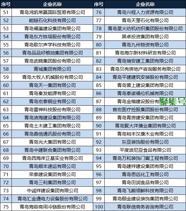 青岛浩海安杰医药科技有限公司排名第50位,青岛鸿凯常赢国际贸易有限公司排名第51位;