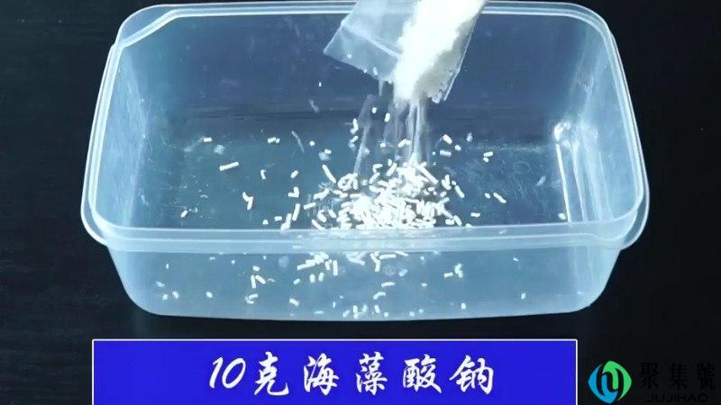 1、倒入10g海藻酸钠,1000ml60度左右的热水。
