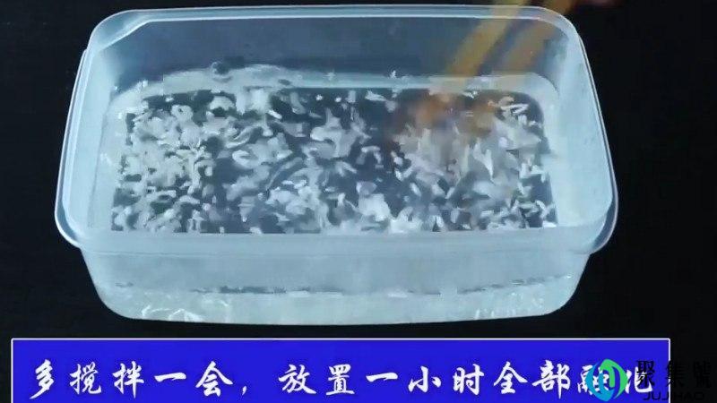 2、多搅拌一会,放置一小时使其全部融化,化成透明稀糊状即可。