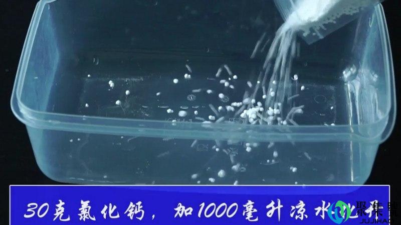 5、取30g氯化钙,加1000ml凉水化开,搅拌一下,十几分钟即可完全溶解。