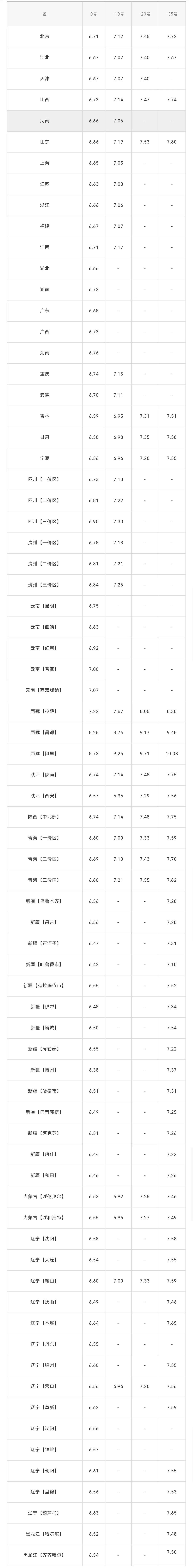2021年12月30日全国各省市柴油价格表