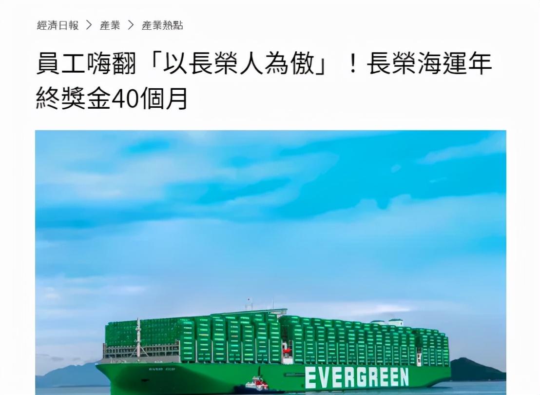 经济日报这样写到:全球货柜轮运价飙涨,长荣海运业绩爆表。今天员工更是嗨到最高点,40个月的年终,不只是羡慕,而是开心的不得了。