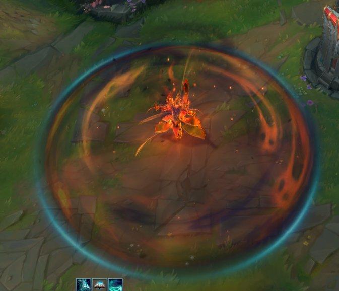 而在技能特效上q技能的改动绝对是最大的,甚至比大招还好看,毕竟你大招多久一个,q技能多久一个。这款皮肤的q技能做成了一个类似岩浆喷发的过程,边缘还有魔法符文。e技能周围除了有火焰还有幽魂,至于大招死歌在吟唱期间会掏出魔法书并召唤出符文阵,敌方则是简简单单的天火轰顶。