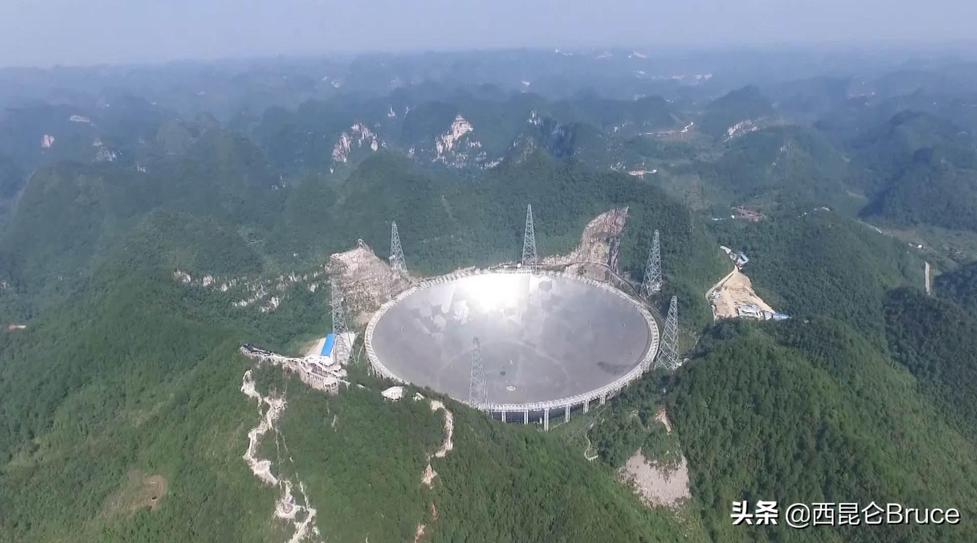 所谓天眼,指的就是位于贵州黔南平塘县的射电望远镜FAST,也是目前世界上最大的单天线射电望远镜,面积相当于30个足球场。用一个很恰当的比喻,来形容它有多大,那就是“如果它是一个可以盛酒的容器,那么地球上的每一个人,能至少分到4瓶贵州茅台”。