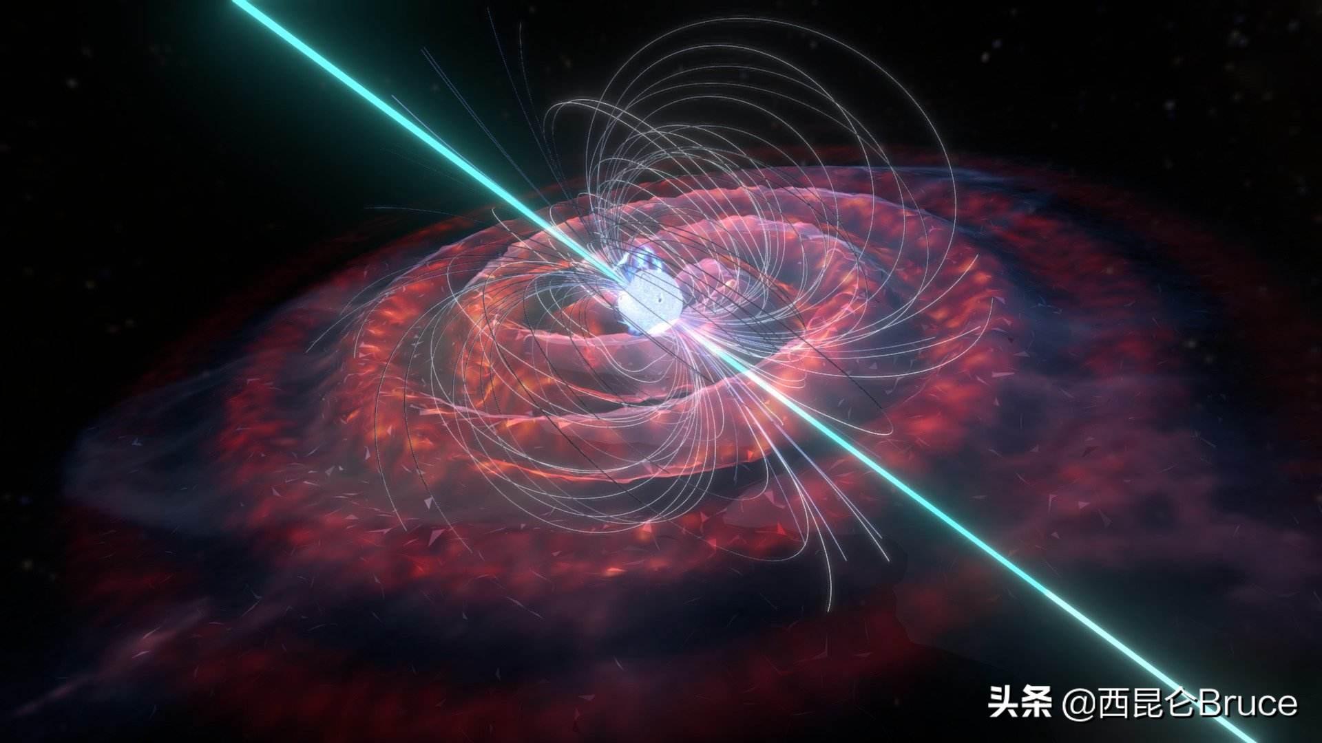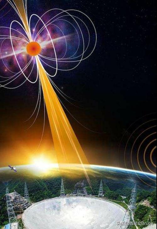 所谓脉冲星,就是巨大的恒星,在燃料耗尽之后,经过爆炸留下了的一个核心。它具有两个特点,一是自转速度极快,我们地球自转一圈是24小时,而脉冲星每秒钟就可以自转上万次。二是脉冲星磁场非常强大,发出的电磁波,是地球的10万亿倍。