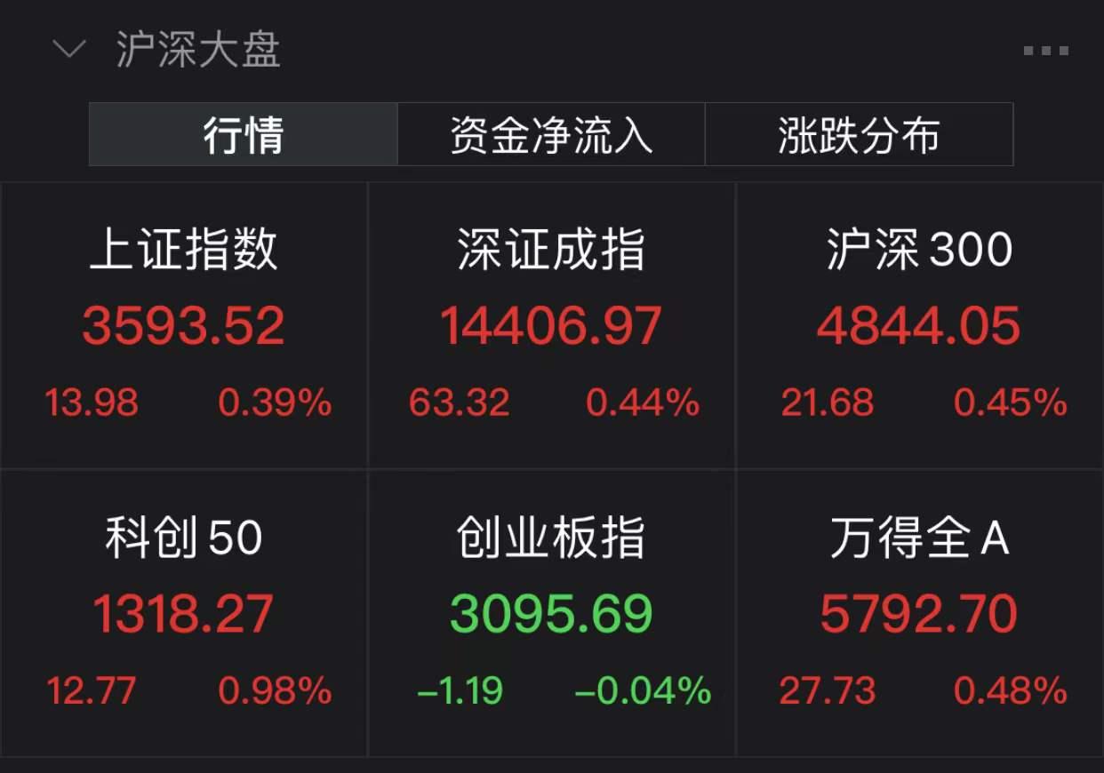今天,A股多项指数终于迎来小幅飘红,上证指数收涨0.39%,深证成指收涨0.44%,沪深300收涨0.45%,科创50收涨0.98%。