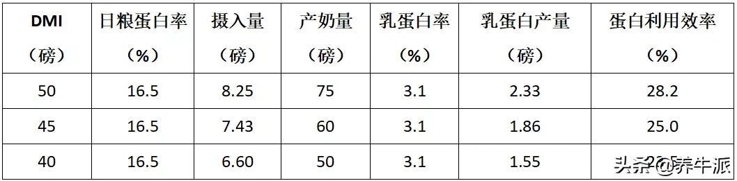 在以上计算过程中涉及了几个假设,若采用乳中的粗蛋白或总蛋白含量,日粮蛋白的利用效率将上升至30%。