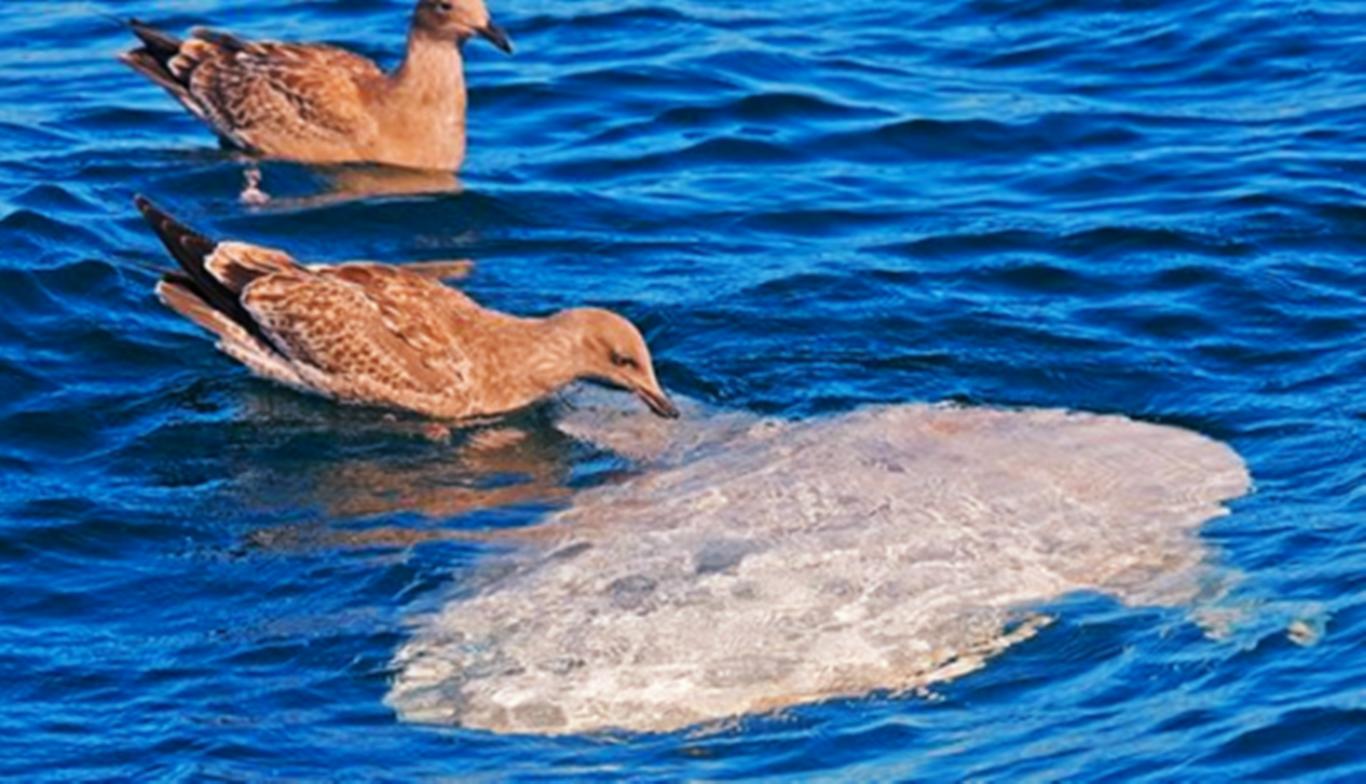 除此之外,翻车鱼身上寄生着许多寄生虫,甚至连寄生虫上都长有寄生虫,这些寄生虫会吸收它们的能量,还会导致它们皮肤变得粗糙不平,更容易滋生寄生虫。为了清理这些寄生虫,它们会游到海面上晒太阳,吸引海鸟帮助它们清理寄生虫。
