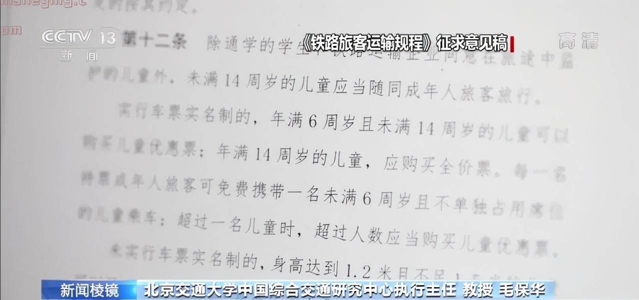 北京交通大学中国综合交通研究中心执行主任 教授 毛保华:按照年龄更加合理,咱们国家现在一个是管理水平提高了,我们现在可以有信息化的管理水平。国家的治理水平提高了,我们现在几乎所有的人都有身份证,都能知道他的年龄。我们的国家也富强了,把福利更多地给老百姓,给孩子成长,我觉得是非常及时的一个政策。