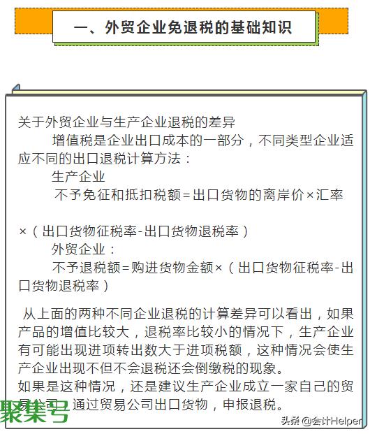 所有基础理论知识都是为实践做铺垫的。所以,会计人员应该要掌握外贸出口退税的理论知识。这里需要注意的是关于外贸企业与生产企业退税的差异。