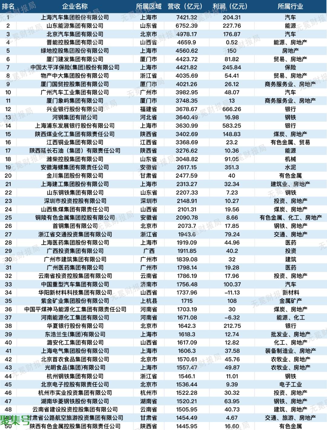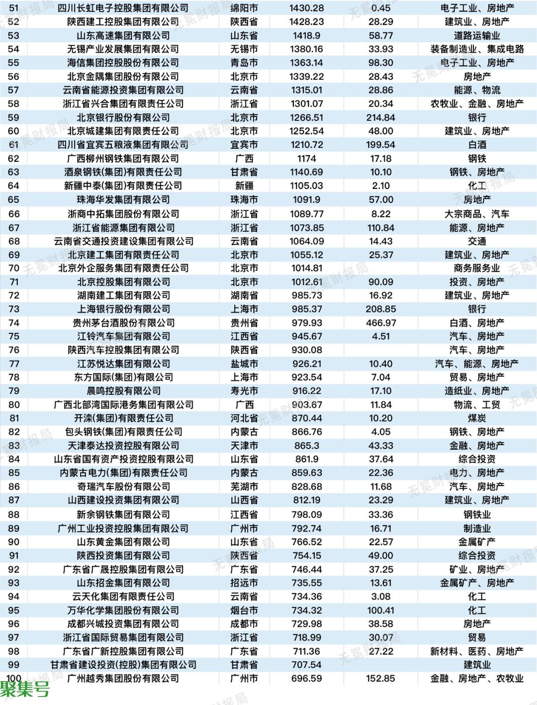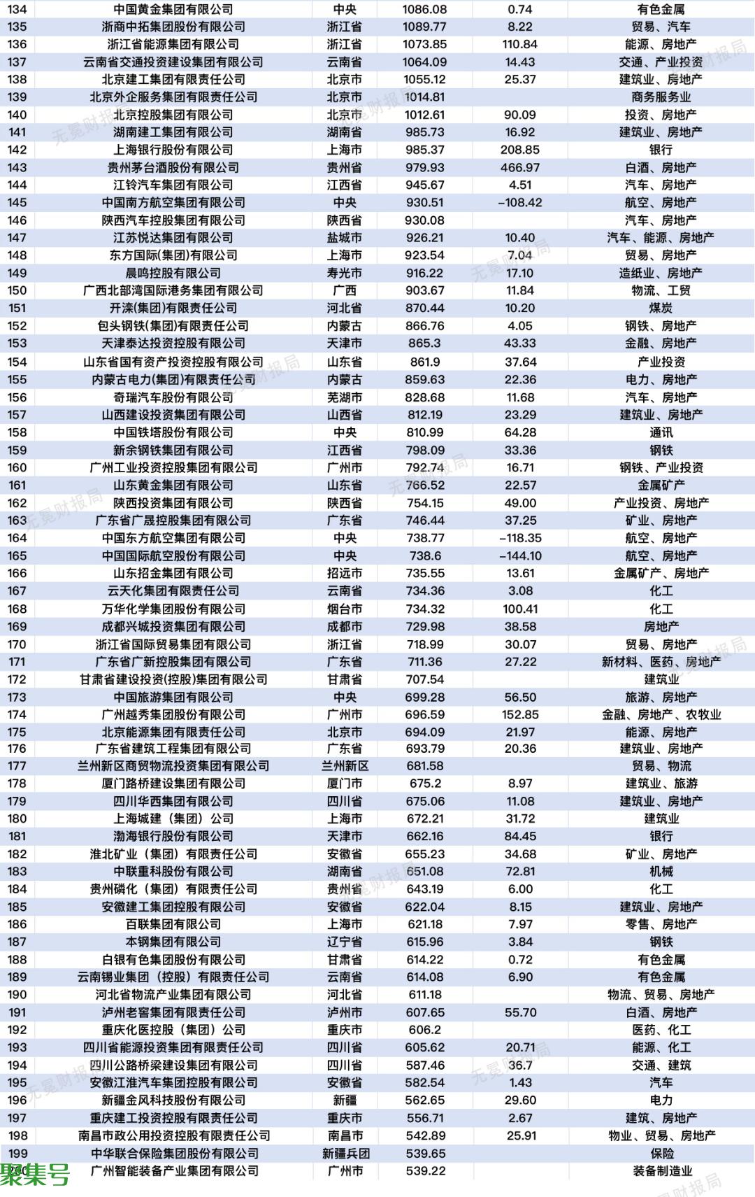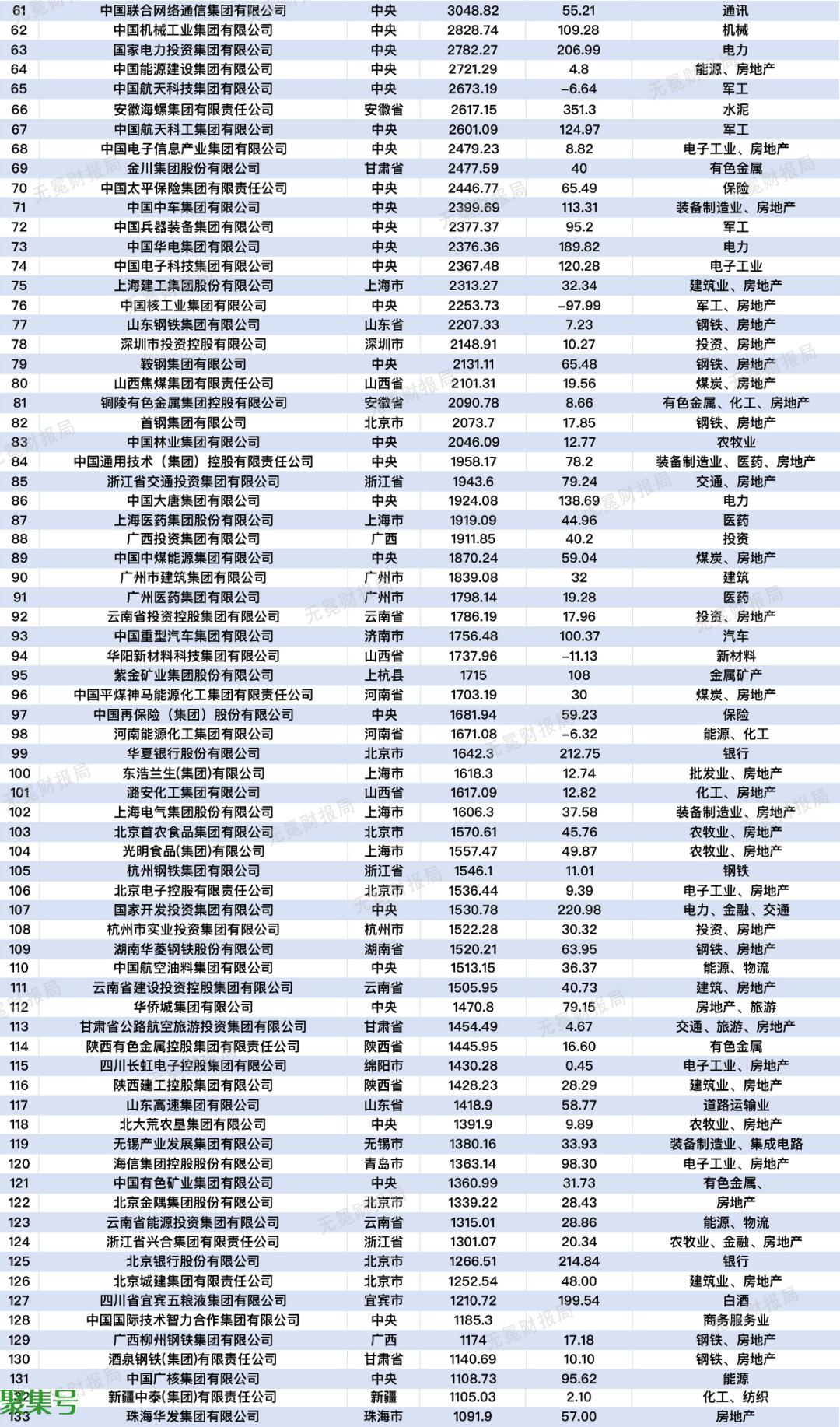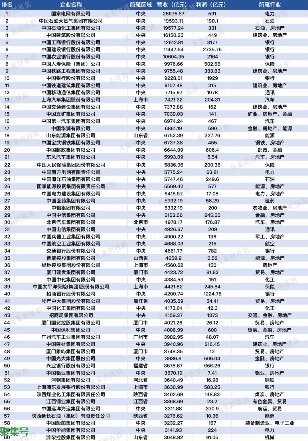 这两个榜单有什么区别呢?中国的国有企业按层次来说可以分为两类,一类是由国务院国资委或财政部直接监管的企业,俗称“央企”,一类是由省(直辖市、自治区)、市(州)、县(县级市)直接监管的企业,俗称“地方国企”。第一个榜单不包含央企,第二个榜单含有央企。