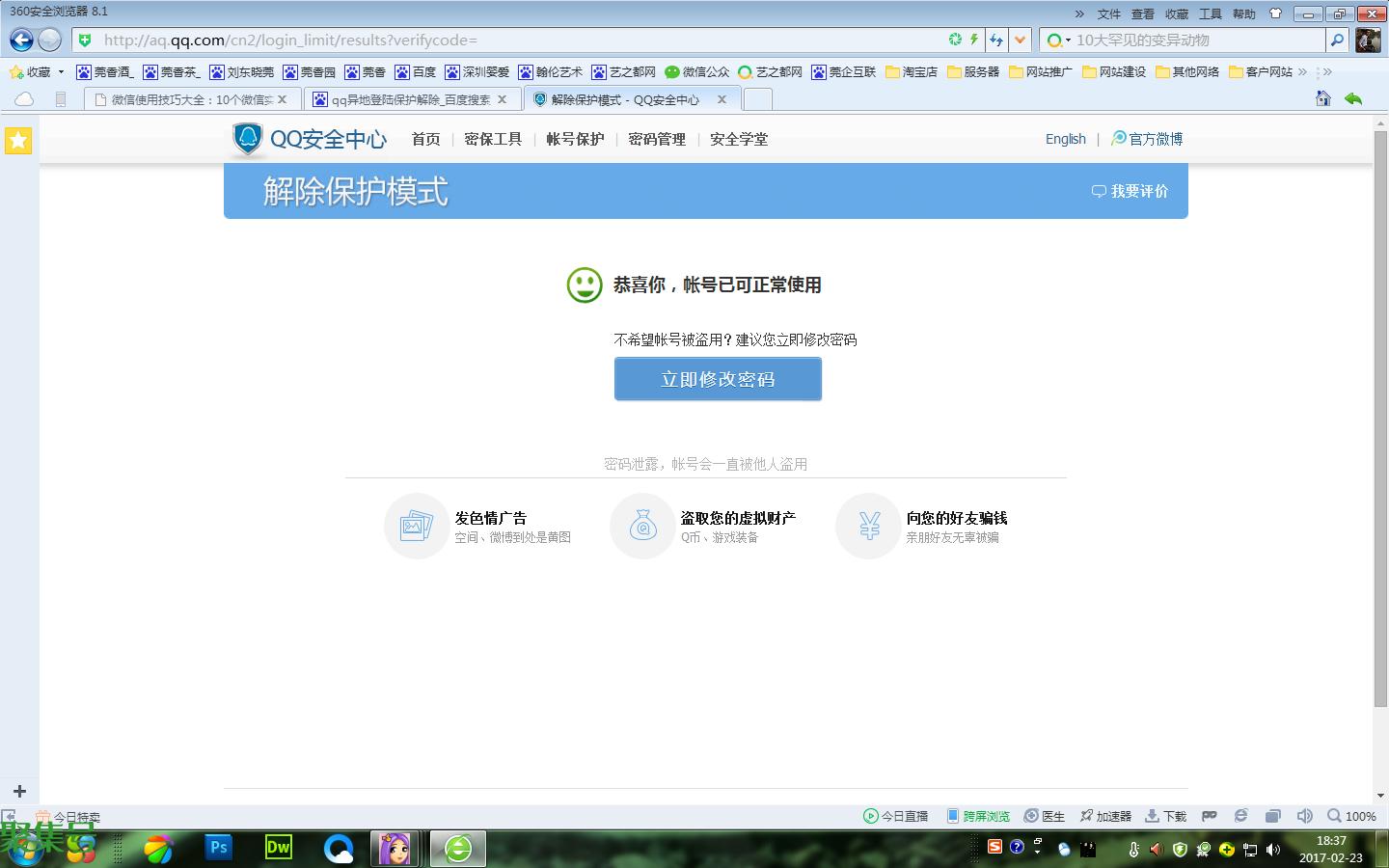 最后建议不要立马修改密码,因为当你需要这个方法恢复登陆的时候相信你其他的验证码和密保密码以及手机都忘记或者失效了。腾讯为了各位隐私安全考虑,设置了严格的保护措施,立马修改密码会有很多安全限制,建议登陆7天后修改!