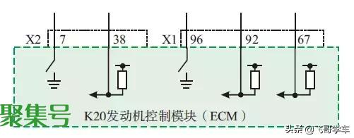 图7是本田车系的符号,在电控单元处画出了简单的内部电路并用英文字母对端子进行了标注。