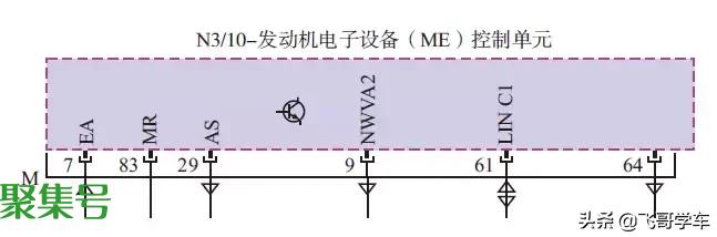 图4是奔驰车系的符号,在电控单元处用英文字母标明该端子的作用,并用箭头符号标明信号是输入还是输出。