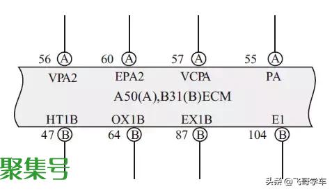 图6是丰田车系的符号,在电控单元处用英文字母标明该端子的作用。