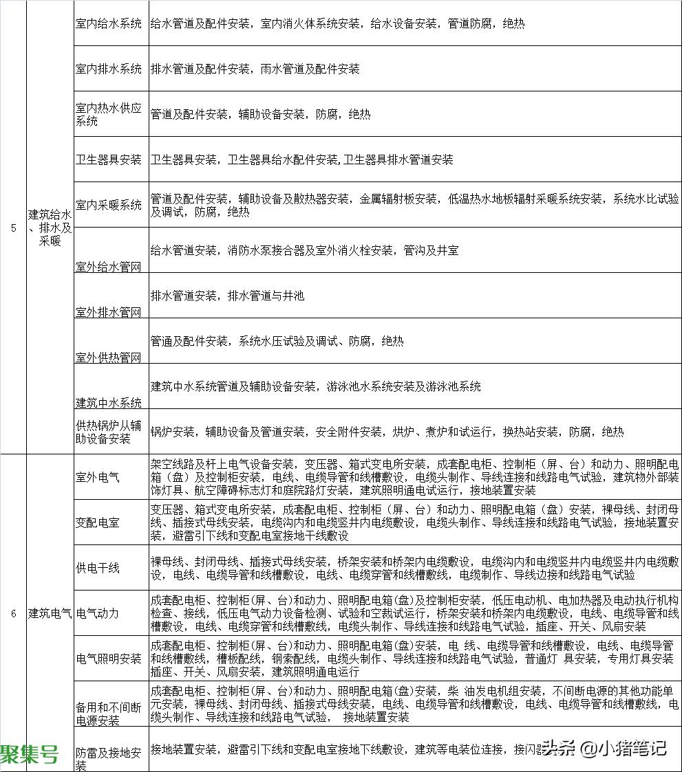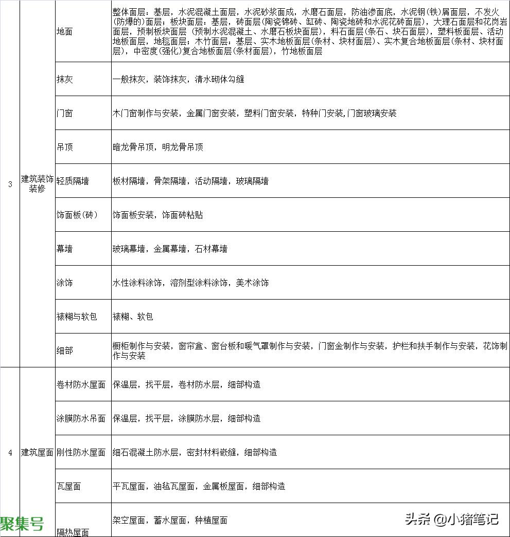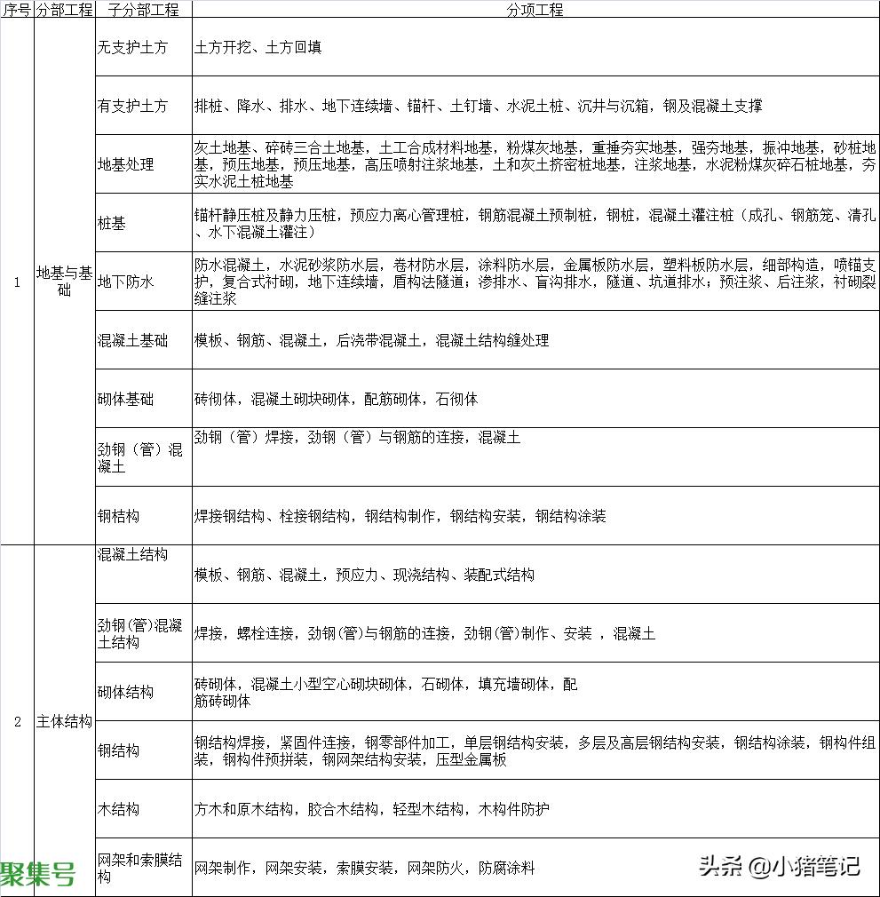 下面为大家整理了建筑工程的所有分部工程、子分部工程和分项工程。