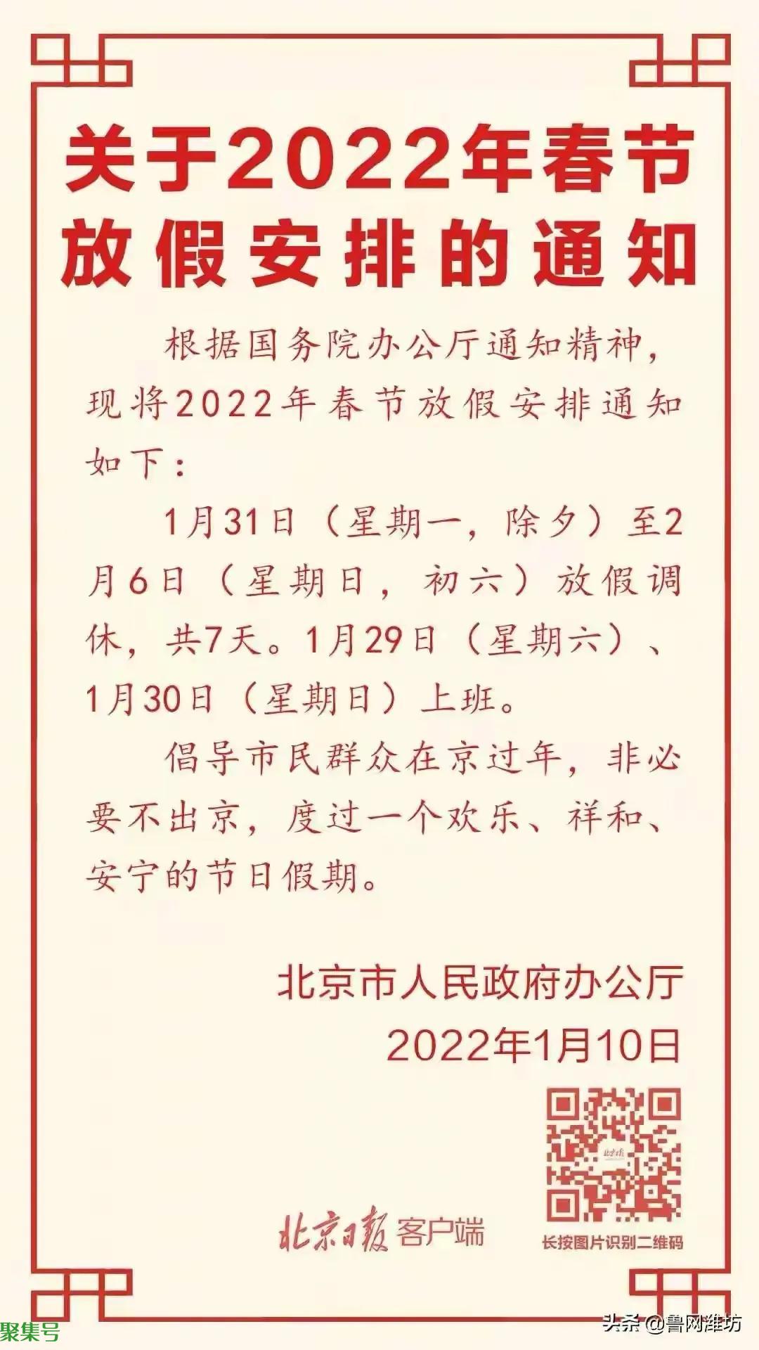 根据上级有关春节放假通知精神,现就2022年春节放假调休日期安排如下: