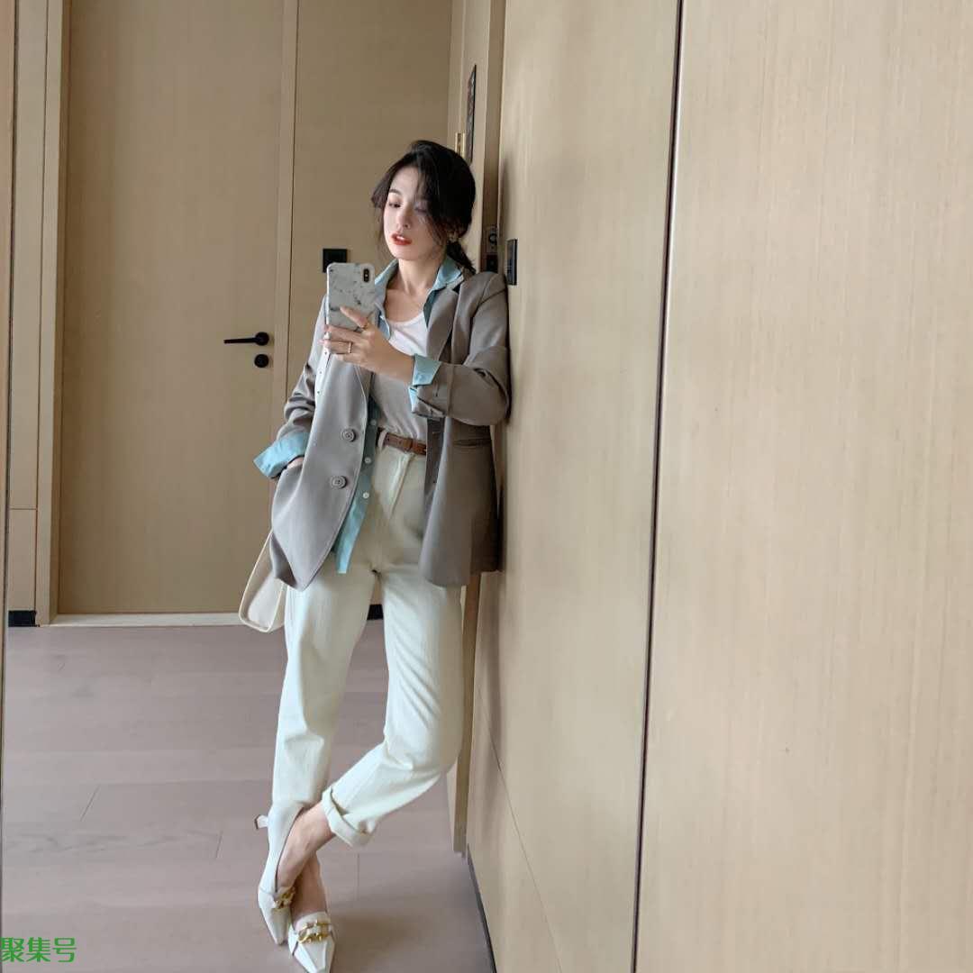 最普遍的穿搭方式就是直接把单品穿在身上,但是这样会给人带来些许的乏味,整个搭配中没有亮点出现。想要让自己的穿搭变得有特色起来,那就试下叠穿的方法吧。叠穿说难也不难,说简单也不简单,最好的叠穿应该是注重衣服的材质、颜色和长短。时尚博主小斯选择了一件卡其色的西装,卡其色虽然没有灰色那样高级,但是它也有自己本身的特点,非常显女人味。同时它这种颜色能够衬托出本人的肤色,白皙透亮的肤色你值得拥有。