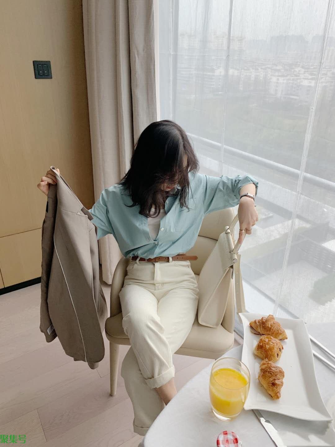 很多小个子的女生都会想要尝试一下西装,但是总是害怕自己的身材太小,没有办法驾驭住西装。其实不然,小个子穿西装,只要挑选正确的西装,就能穿出好气质。小斯身上的这款西装属于中长款式,小个子女生都是可以穿的。选择垫肩设计的西装会更好,这样不会出现溜肩的情况。青绿色是春天的颜色,穿在身上实在是太有春天的味道了。为了突出了这个叠穿的效果,她还专门把衬衫的袖口露在外面,与西装合为一体,更显特别。在衬衫里面搭配一件白色的小背心,起到了打底的作用。如果你想要你的造型变得更加有型一些,那就像小斯一样解开纽扣,展现自己的身材吧。