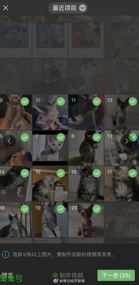 据了解,微信朋友圈增加新功能,可发送20张图片,且超出9张图时需制作成新的视频再发表。