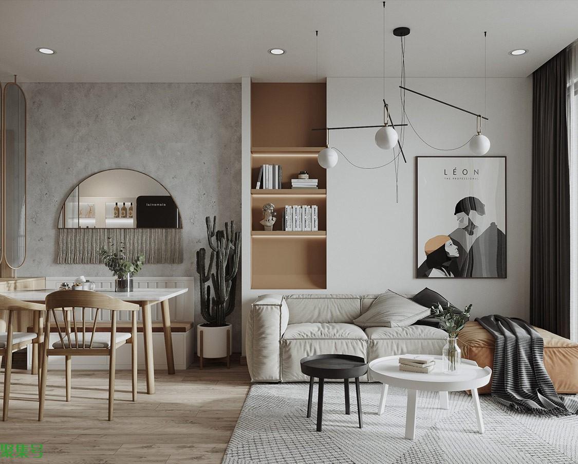 这两年莫兰迪凭着温和素雅的色调受到许多人的青睐,莫兰迪色系不止日常生活中会用到很多,也是作为家装界新晋升的宠儿。像这套面积100㎡就是主打莫兰迪色调,拱形门洞的加入柔和空间视觉效果,提升了房屋整体颜值。