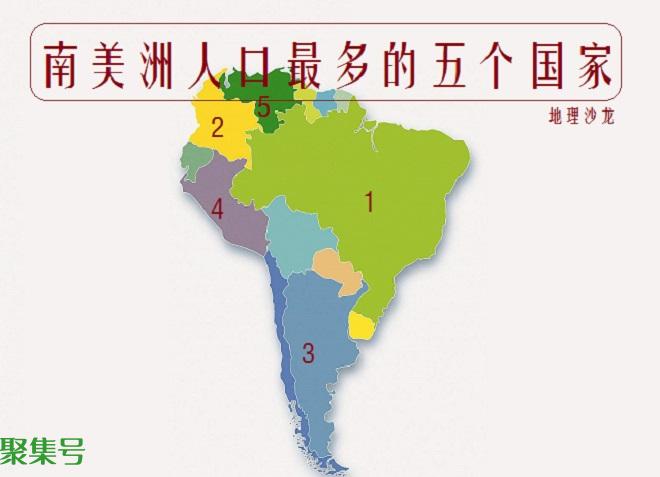南美洲面积最大的国家是巴西,另外还包括阿根廷、秘鲁、智利、哥伦比亚、委内瑞拉等国家,总共国家数量为13个,是除了南极洲之外国家数量最少的大洲。在南美洲13个国家中,人口数量最多的五个国家分别是巴西、哥伦比亚、阿根廷、秘鲁和委内瑞拉。