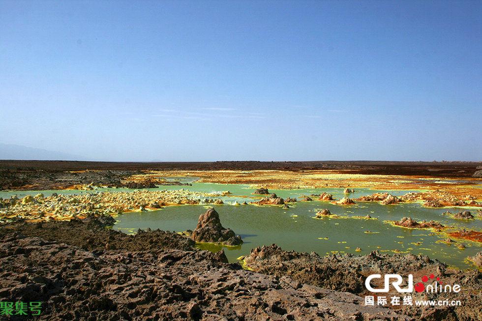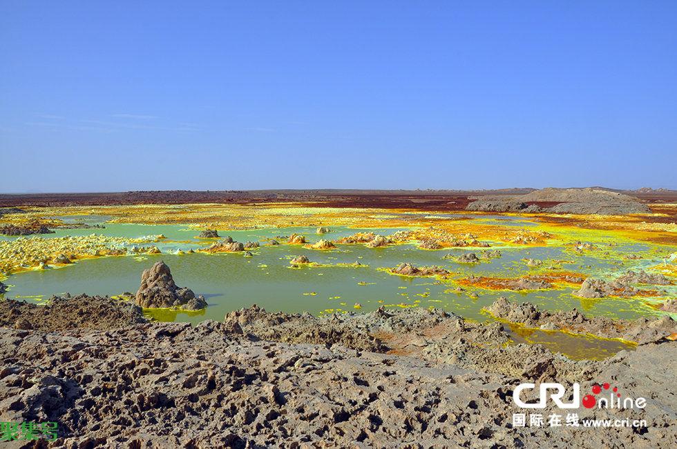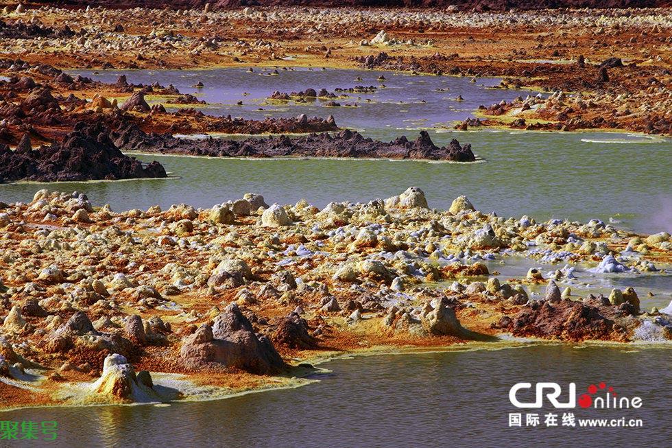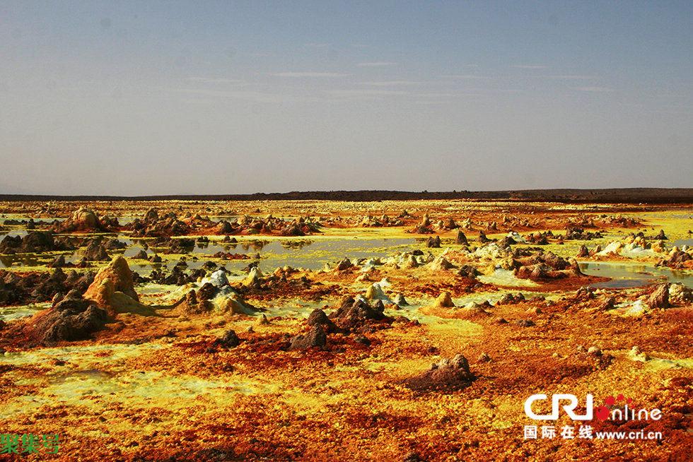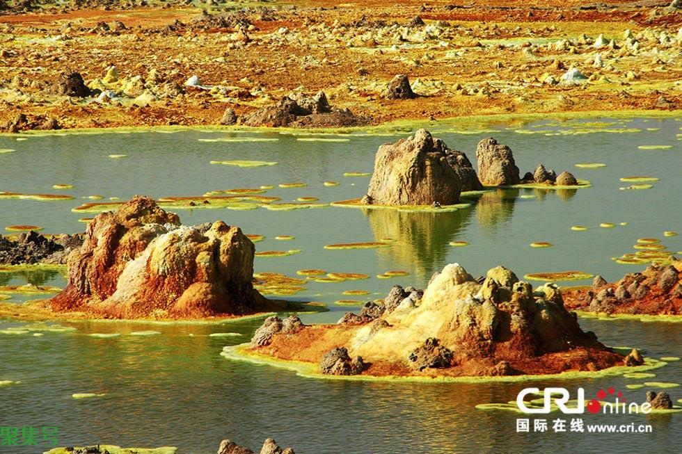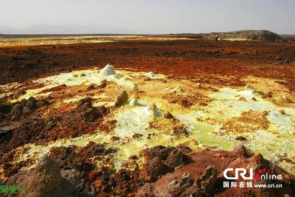 埃塞俄比亚达纳基尔(Danakil) 地区的达罗尔(Dallol)火山距离尔塔阿雷(Erta Ale)火山熔岩湖仅25公里,是地球上最热的地方。达罗尔(Dallol)火山低于海平面48米,也是世界上最低的火山。这是一座埋藏在1千米厚的盐层地下的火山。在地上它表现为色彩斑斓的泉水和奇特的盐土,地貌上的喷气孔,硫磺以及其他矿床。 摄影:李玲