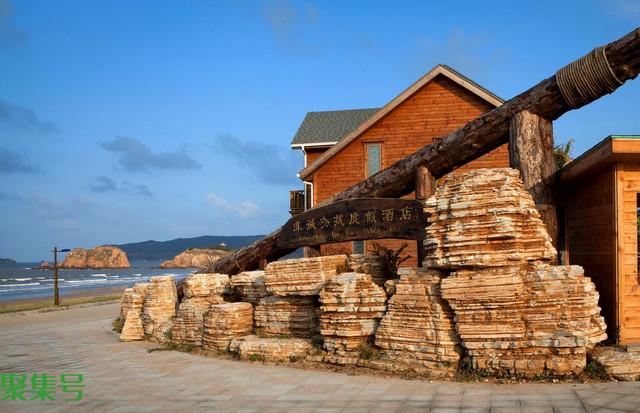 青色的色调给这一块不大的纯净沙滩平添了更幽静的意境。倘若时间宽裕,不妨到周围走走。到青沙渔俗风情馆看看,有点像当地渔俗小博物馆。