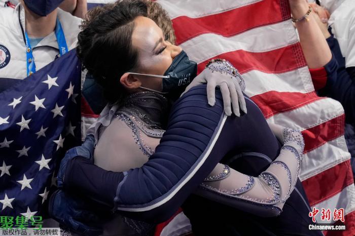 2月7日,美国花滑选手乔克和贝茨热情相拥。