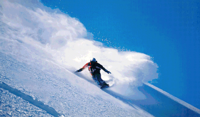 ★若想向左转弯,就把身体重心倾向右脚,保持雪板平行于雪面;