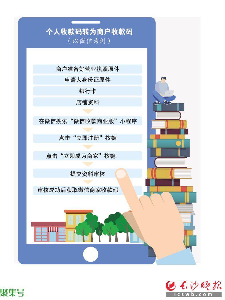 以微信为例,商户需要提前准备好营业执照原件、申请人身份证原件、收款后结算到账的银行卡(也就是收银的钱要存入哪个银行)、店铺的门头、店内照片等资料,在微信搜索“微信收款商业版”小程序,点击“立即注册”按键,进入“微信支付商家助手”小程序后,点击“立即成为商家”按键,提交资料后腾讯官方会进行审核,审核成功就能获取微信商家收款码。同理,支付宝也有类似的商户收款码,商户在支付宝APP“商家服务”内按页面提示的要求填写申请信息。