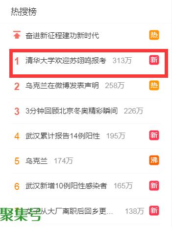 #清华大学欢迎苏翊鸣报考#冲上微博热搜第一。