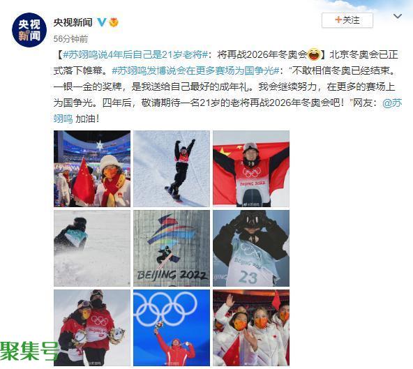 北京冬奥会已正式落下帷幕。苏翊鸣发博说会在更多赛场为国争光:“不敢相信冬奥已经结束。一银一金的奖牌,是我送给自己最好的成年礼。我会继续努力,在更多的赛场上为国争光。四年后,敬请期待一名21岁的老将再战2026年冬奥会吧!”