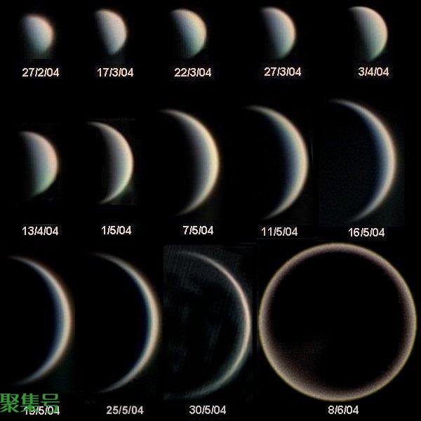 金星的相位变化,当然随着金星与地球之间位置变化的同时也会导致距离的变化,因此各个相位上金星的大小是不一样的,下合时候最大,但会淹没在白天耀眼的阳光之中,而西大距时则是凌晨可见,太阳一旦升起就看不到了!而东大距时几乎整夜可见,因此我们认为东大距时最适合金星观测的!
