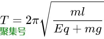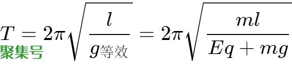 直接计算了。但重力和电场力合力是方向始终竖直向下的恒力,相当于单摆理想模型中的重力作用,我们称之为等效重力,用等效重力除以摆球质量得等效重力加速度,因此,该单摆的周期可用