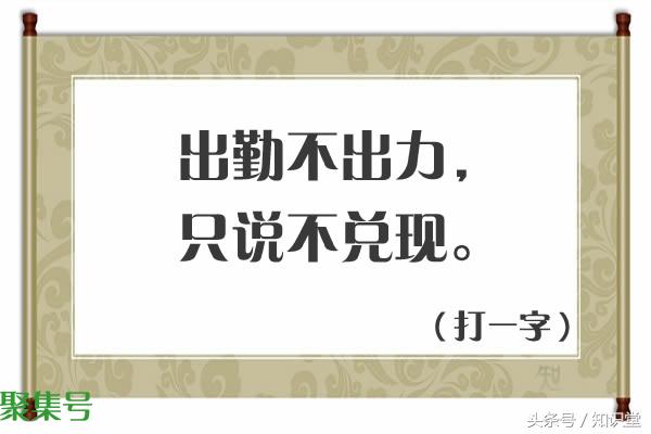 字谜2:出勤不出力,只说不兑现。(打一字)