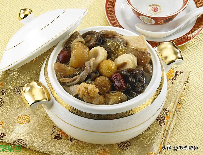 此菜食物多样,软糯脆嫩,汤浓鲜美,味中有味,回味无穷,营养丰富,并能明目养颜、活血舒筋、滋阴补身、增进食欲。