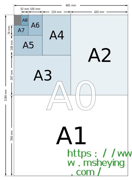 方法:A0纸长度方向对折一半后变为A1纸;A1纸长度方向对折一半后变为A2纸;A2纸长度方向对折一半后变为A3纸,A3纸长度方向对折一半后变为A4纸。