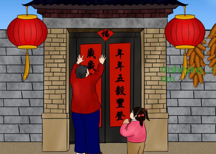二、贴对联、福字、门神