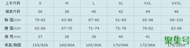 服装号型标志:号型的表示方法为号与型之间用斜线分开,后接体型分类代号。例如:上装160/84A,其中160为身高,代表号,84为胸围,代表型,A代表体型代号;下装160/68A,其中160为身高,代表号,68为腰围,代表型,A代表体型代号。本尺码对照表仅作参考之用。请您在试穿之后量身选择适合自己的尺寸。