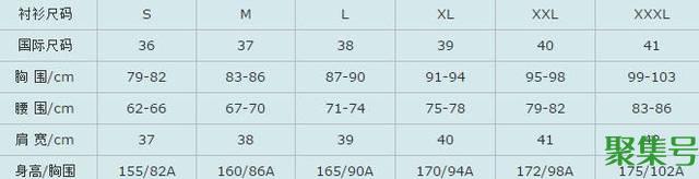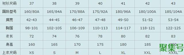 男衬衫尺码对照表