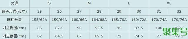 女裤尺码对照表