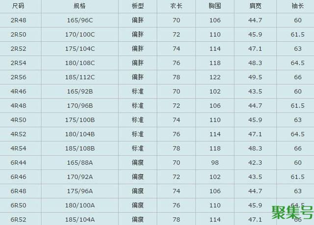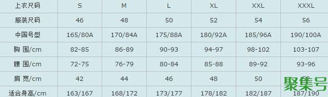 西装尺码对照表