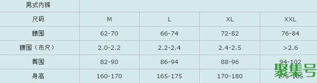 男式内裤尺码表