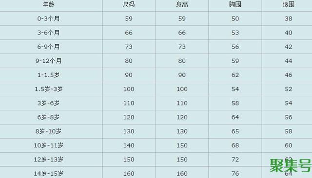 中童尺码对照表