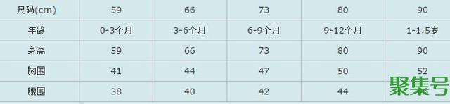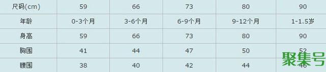 婴童尺码对照表