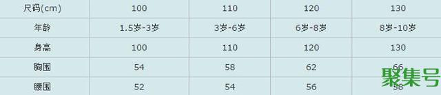 说明:上述提供的计算公式是根据经验得到的数据参数,试用于绝大多数人群,不适用于特殊体型要求。注意:表格中尺码项即为小孩身高,请顾客按照尺码项选择合适的码数,宝贝幼嫩肌肤。