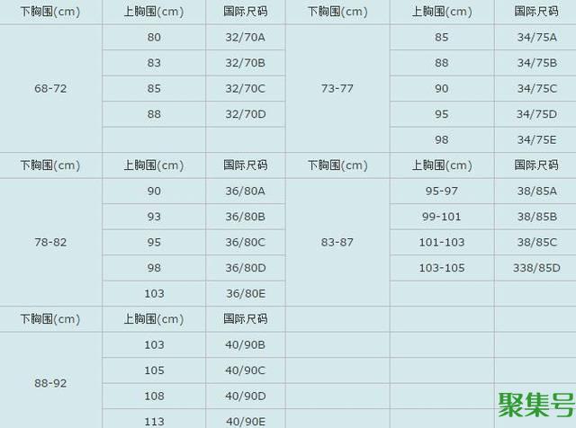 文胸尺码对照表