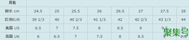 男鞋尺码表